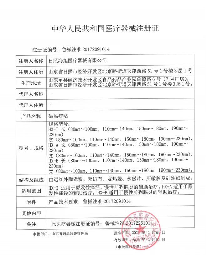 生產(chǎn)企業(yè): 日照海旭醫(yī)療器械有限公司