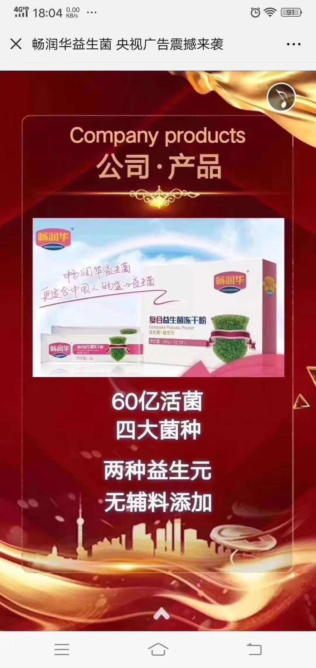 - 天津暢潤(rùn)華生物科技有限公司成立于2013年,專注于營(yíng)養(yǎng)食品和功能性食品研發(fā)和銷售,經(jīng)過(guò)近幾年來(lái)腳踏實(shí)地的發(fā)展,公司產(chǎn)品線日趨豐富,成功推廣了“益生菌凍干粉”、“乳鈣”、“ DHA藻油”、“小暢膠原蛋白肽”、“多種維生素”、“暢潤(rùn)茶”、等產(chǎn)品。