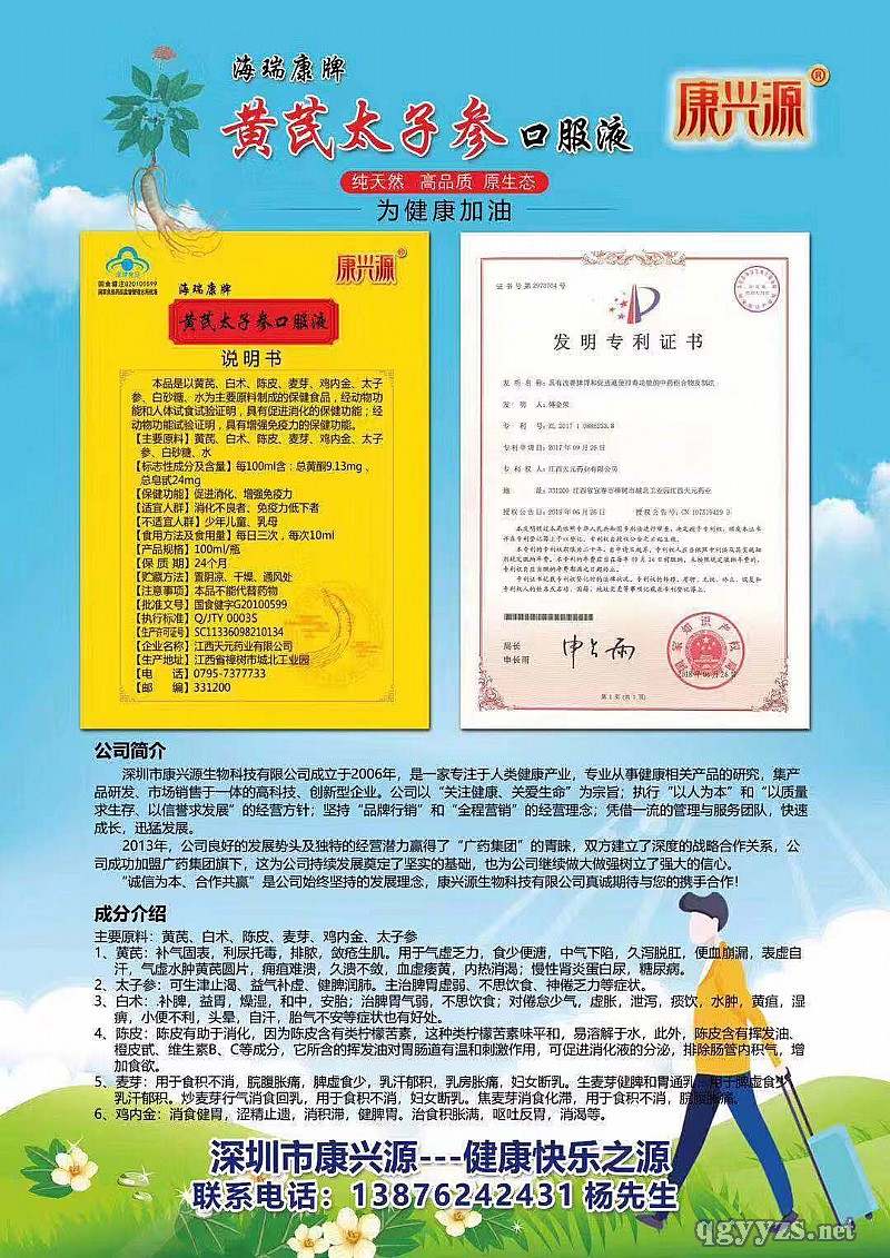 | 主要成分 | 黃芪、白術(shù)、陳皮、麥芽、太子參、白砂糖、水 |