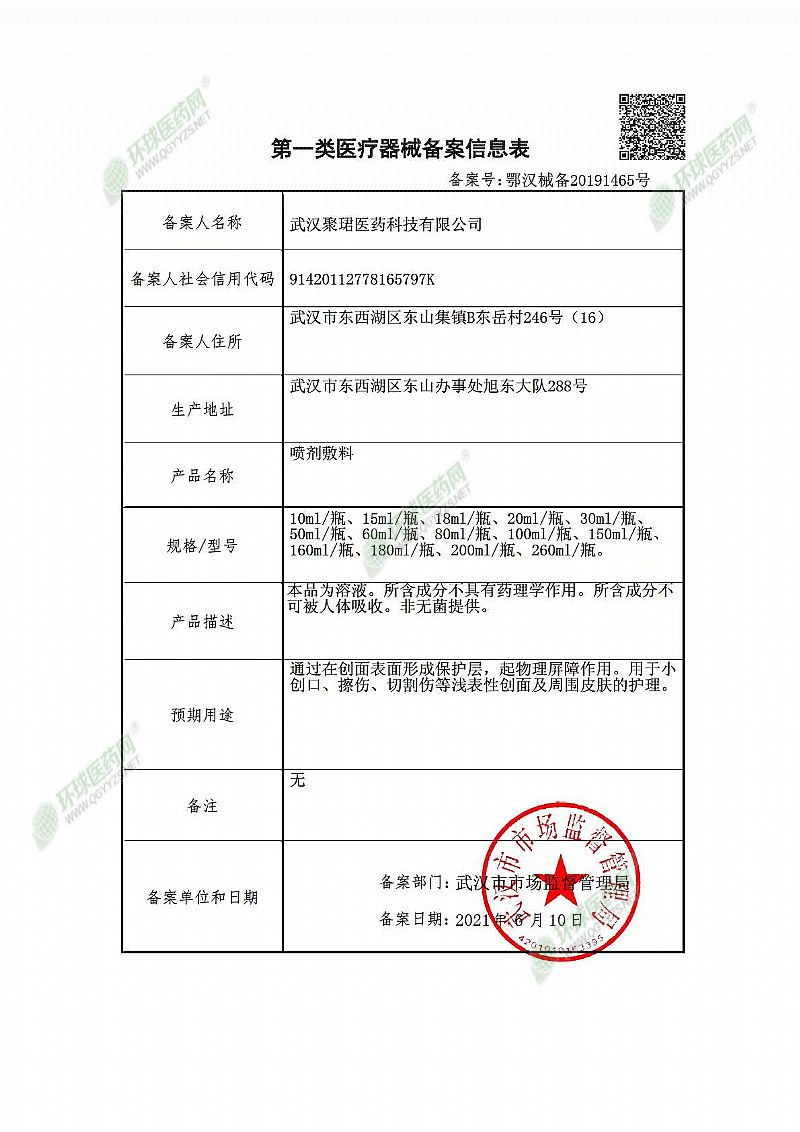 批準(zhǔn)文號(hào): 鄂漢械備20191465號(hào) 【驗(yàn)證真?zhèn)?/a>】