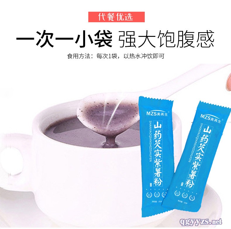 | 補充說明 | 品名:山藥芡實紫薯粉(固體飲料) 配料:山藥、芡實、紫薯、小麥胚芽、黑芝麻、薏苡仁、燕麥、豌豆、低聚異麥芽糖、低聚果糖 凈含量:500克(20*25克) 貯存條件:置陰涼、通風(fēng)、干燥處 食用方法:每次1袋,以熱水沖飲即可。 保質(zhì)期:24個月 |