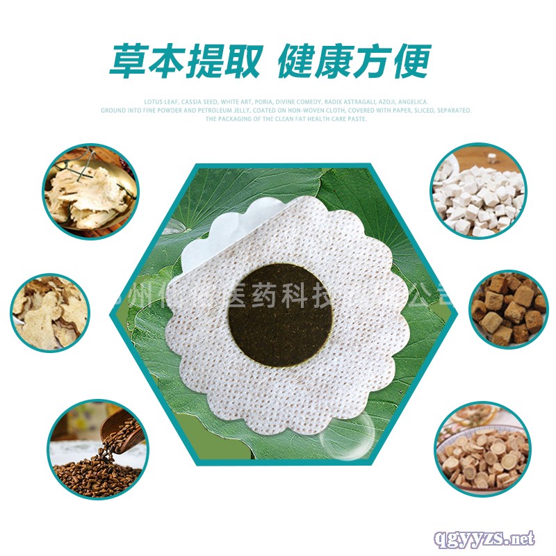 主要成分 由荷葉、決明子、白術(shù)、茯苓、神曲、黃芪、澤瀉、當歸研磨成細粉與凡士林混合成膏,涂在無紡布上,覆蓋離型紙,切片,分裝,包裝而成的清脂保健貼