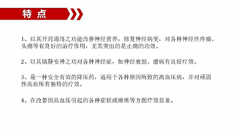 | 功能主治 | 開竅,通絡(luò),止痛。用于“白脈病”神志不清,身體麻木,頭昏目眩,腦部疼痛,血壓不調(diào),頭痛,癲癇及**神經(jīng)性疼痛。 |