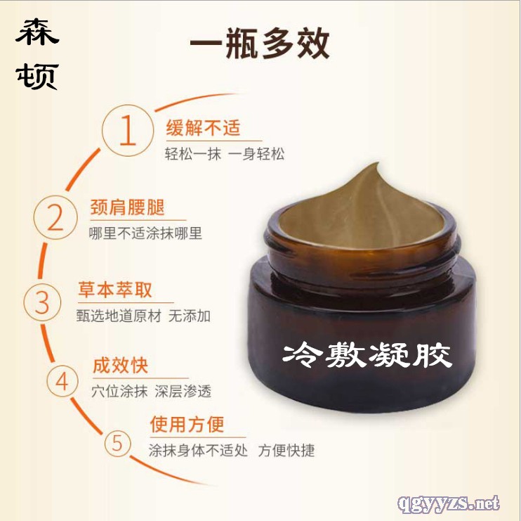 | 補充說明 | 森頓筋骨冷敷凝膠使用方便,哪里痛抹哪里,擺無任何副作用,氣味清新不刺鼻。免除患者繁瑣治療之痛苦,且不影響正常工作生活,經(jīng)皮膚直接涂抹、不走彎路、直達病灶,是****的方式!不經(jīng)過消化道,二不經(jīng)過血液循環(huán),直接經(jīng)過皮膚快速滲入。用于筋骨的冷敷理療,適用于頸椎病、肩周炎、關節(jié)炎、腰椎突出增生、腱鞘炎、滑膜炎、腰肌勞損、肌肉拉傷、跌打損傷、風濕類風濕等的輔助治療。 |
