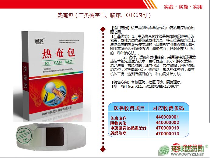 | 補(bǔ)充說(shuō)明 | 產(chǎn)品優(yōu)勢(shì)] 1. 中藥熱奄包療法是將加熱好的中藥藥包置于身體的患病部位或身體的某特定位置如穴位上。通過(guò)奄包的熱蒸氣使局部的毛細(xì)血管擴(kuò)張血液循環(huán)加速利用其溫?zé)徇_(dá)到溫經(jīng)通絡(luò)、調(diào)和氣血祛濕驅(qū)寒為目的的一種外治方法。。 2、灸療、遠(yuǎn)紅外療相結(jié)合,采用獨(dú)特的環(huán)保發(fā)熱技術(shù)和先進(jìn)透皮技術(shù),自行發(fā)熱,18小時(shí)持久發(fā)熱,溫經(jīng)通絡(luò),祛風(fēng)散寒,活血化瘀.穴位教貼,用藥物燒灼穴位,將熱能轉(zhuǎn)化為生物內(nèi)能. 激活熱體經(jīng)絡(luò),調(diào)節(jié)機(jī)體平衡,達(dá)到臺(tái)病目的的一種內(nèi)病外治方法。 |