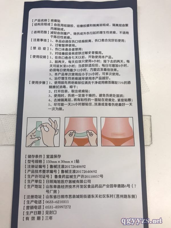 | 產(chǎn)品用途 | 疤痕貼適用于因手術(shù)或者是車禍、燒傷及割傷以后,留在身體上任何部位的已愈合的疤痕的治療,如增生性的疤痕、疤痕疙瘩等等?稍诎毯酆屯饨绛h(huán)境中形成一種物理屏障,它具有保持疤痕的濕潤(rùn)及清潔,從而有助于疤痕整體情況得到改善,而是面積縮小,顏色減弱,起到了治療作用。也可以與其他疤痕的治療方法聯(lián)合使用,可明顯的增強(qiáng)療效。疤痕帖一般柔軟平整,為透明色,卻舒適、耐用。每片反復(fù)可以使用10-28天,白天、夜間均可以使用。 |