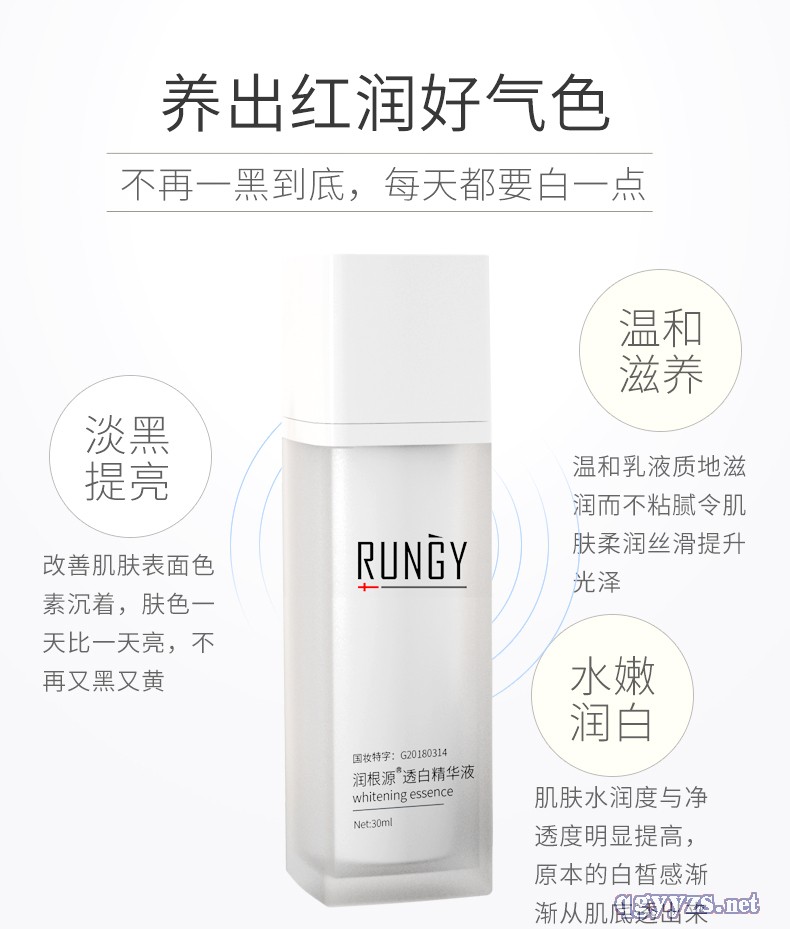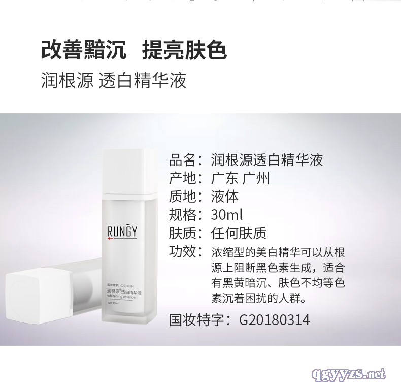 | 產(chǎn)品名稱 | 國妝特字號**美白潤根源透白精華液 |