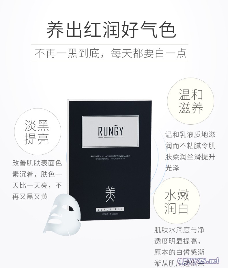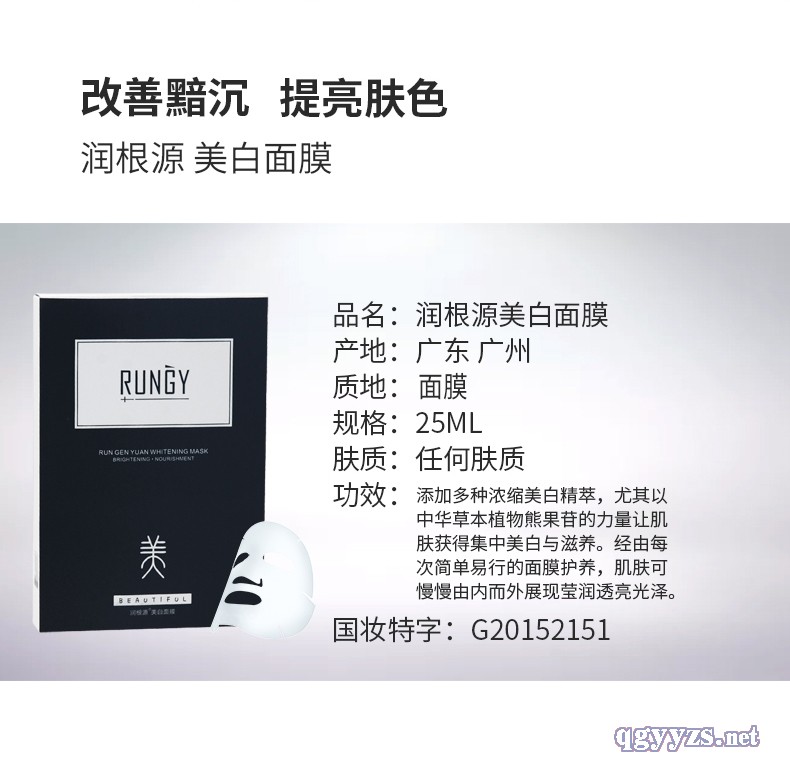 | 產(chǎn)品名稱 | 潤根源美白面膜 |