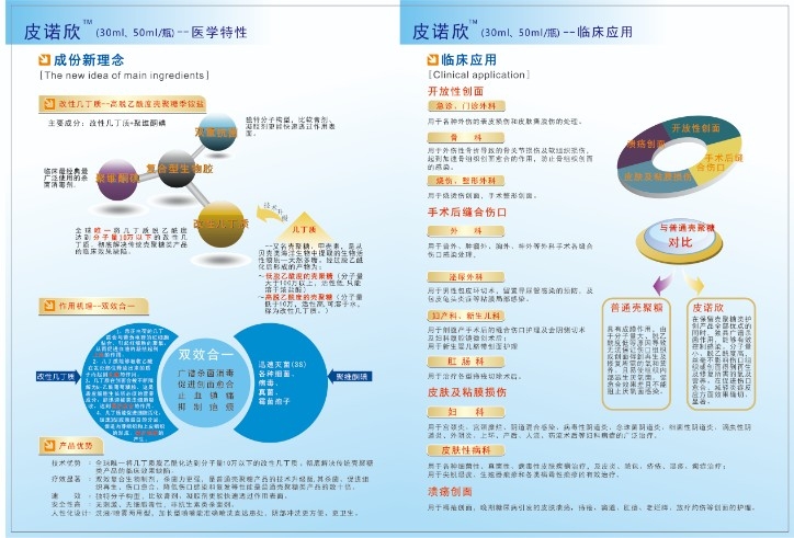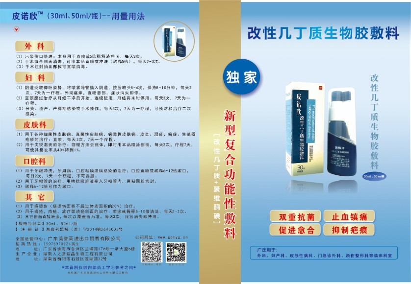 | 產(chǎn)品名稱 | 改性幾丁質(zhì)生物膠敷料(皮諾欣) |