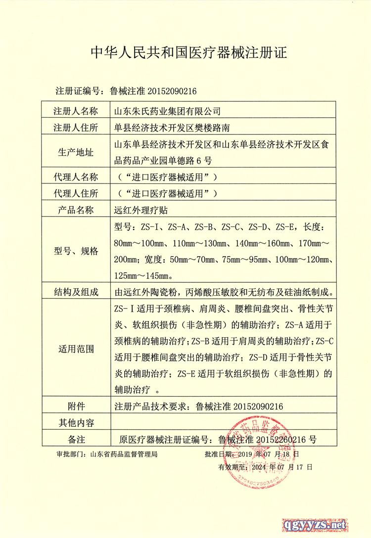 | 補充說明 | 山東朱氏藥業(yè)集團有限公司有幾十種一類、二類械字號文號,現(xiàn)有產(chǎn)品也有上百種,合作客戶也是遍布全國各地,膏藥貼劑、保健食品、高端化妝品系列全國招商,我們?yōu)榱藬U大市場,與更多客戶合作,也希望有新型外用產(chǎn)品規(guī)格定制加工要求、貼牌加工的客戶聯(lián)系吳總:15253166614。我們給您專業(yè)的遠紅外理療貼產(chǎn)品和服務(wù)。 |