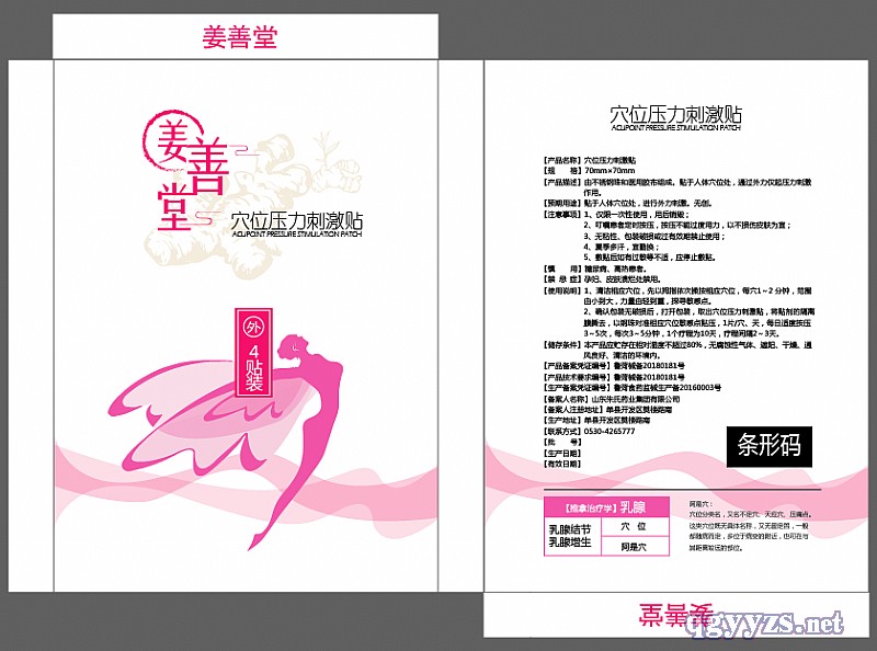 | 其它說明 | 市面上的姜貼多數(shù)為保健用品,企業(yè)標(biāo)準(zhǔn)文號(hào)。姜善堂系列貼膏主打生姜提純技術(shù)同醫(yī)療器械完美融合,批文運(yùn)作醫(yī)院、診所、藥房等線下暢通無阻。 |