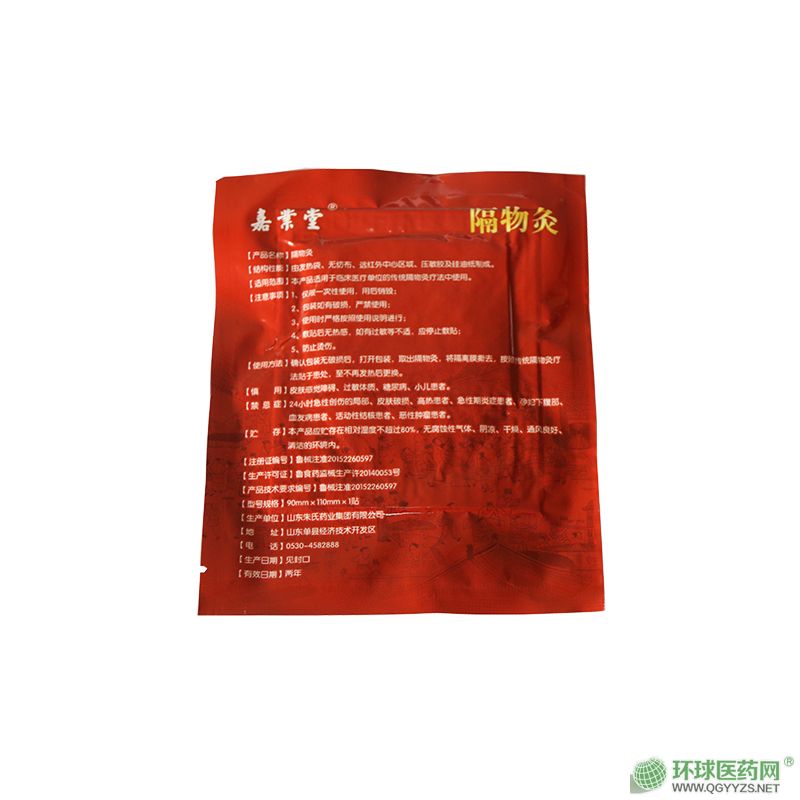| 使用方法 | 確認包裝無破損后,打開包裝,取出隔物灸,將隔離膜撕去,按照傳統(tǒng)隔物灸療法貼于患處,至不再發(fā)熱后更換。 |
