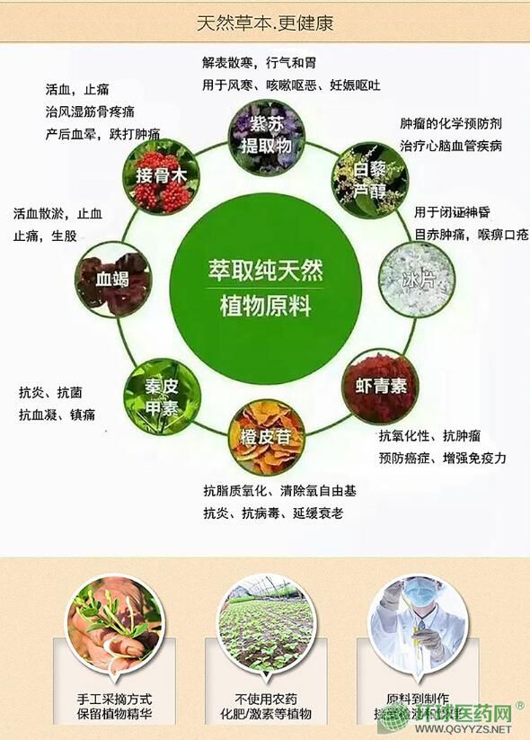 | 補充說明 | 胡椒籽:胡椒性溫?zé)幔瑢ξ负碌奈父估渫、腸鳴腹瀉有很好的緩解作用,并調(diào)理風(fēng)寒感冒,可散寒、健胃等,可增進食欲、助消化,促發(fā)汗;還可以改善女性白帶異常及癲癇癥。 紫蘇:解表散寒,行氣和胃?捎糜陲L(fēng)寒感冒、咳嗽、魚蟹中毒。 冰片:開竅醒神、清熱消腫、止痛等功能,可用于治療神志昏迷、中風(fēng)痰厥、氣厥、瘡瘍腫痛、口瘡、咽喉腫痛、眼疾、牙齦腫痛等疾病。用于冠心病、心絞痛的治療,治療慢性鼻腔炎,可用于神經(jīng)痛及消炎。冰片在粘膜、皮下組織容易吸收,并在體內(nèi)與葡萄糖醛酸結(jié)合后排出體外。 蝦青素:具有多種生理功效,如在抗氧化性、抗腫瘤、預(yù)防癌癥、增強免疫力、改善視力等方面都有一定的功效。 益母草:治療婦女月經(jīng)不調(diào),胎漏難產(chǎn),胞衣不下,產(chǎn)后血暈,瘀血腹痛,崩中漏下,尿血、瀉血,癰腫瘡瘍,血小板聚集作用,還有增強機體的細胞免疫等作用,增加冠脈流量, 降低冠脈阻力的作用。 |