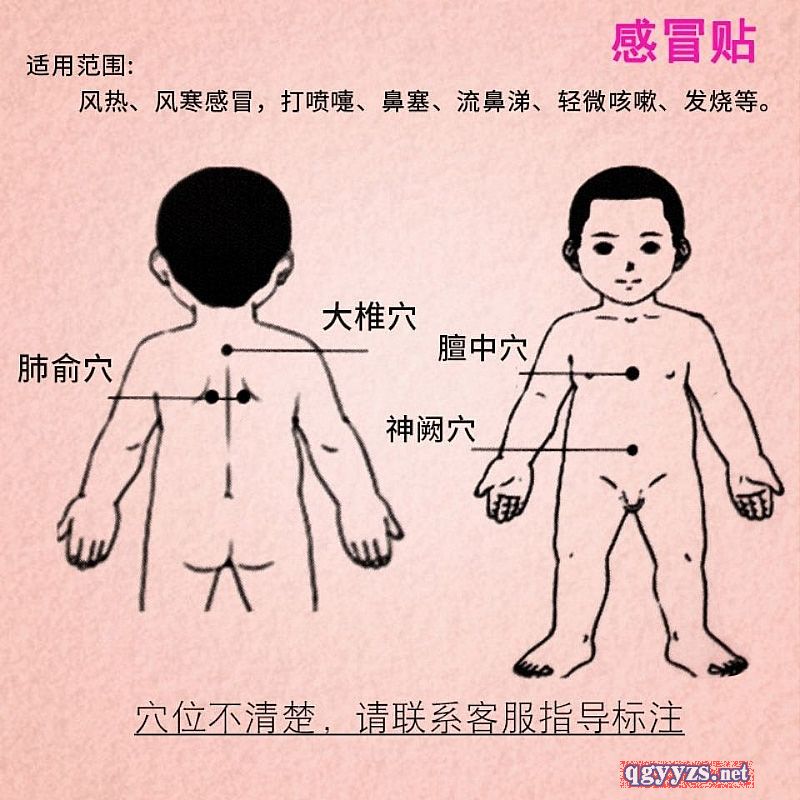 | 使用方法 | 將穴位周圍清洗干凈。待干燥后,揭去本品防粘紙,貼于大椎穴、神闕穴、天突穴、涌泉穴。每貼敷6-8小時更換一次。 |