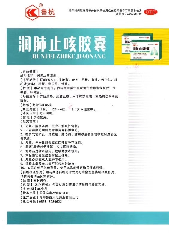 | 通用名稱 | 潤肺止咳膠囊 |