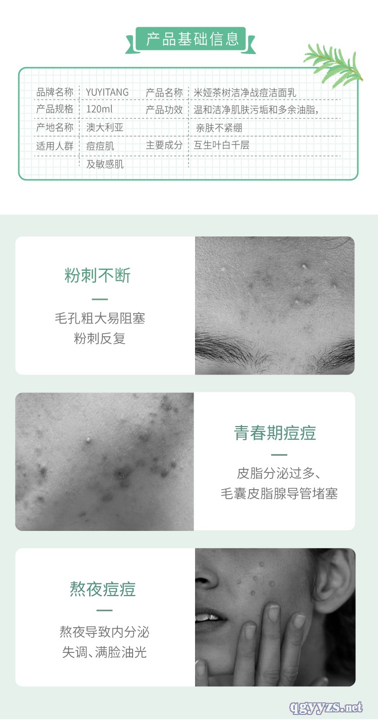 | 產(chǎn)品賣點 | 這是一款非常濕潤細致的潔面乳,天然澳洲芳香茶樹提取互生葉白千層葉油,能有效調(diào)控多余油脂分泌,修護痘痘肌,令肌膚光滑細膩,清爽怡人。 |