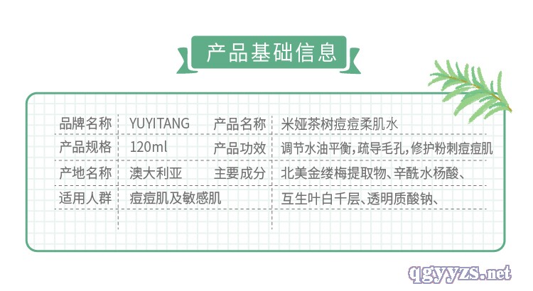 | 產(chǎn)品名稱 | YUYITANG米亞茶樹清瀅痘畢精華 |