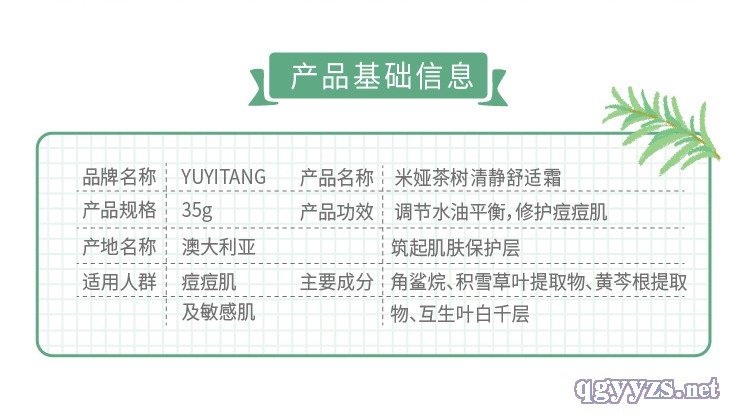 | 產(chǎn)品名稱 | YUYITANG米亞茶樹清靜舒適霜 |