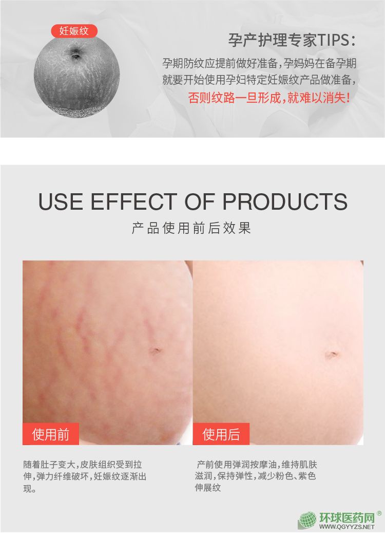 | 產(chǎn)品用途 | 適合產(chǎn)后腹部、背部及腿部使用。修護(hù)因懷孕產(chǎn)生的妊娠紋和幫助肌膚彈性恢復(fù),恢復(fù)緊致度,增強(qiáng)皮膚彈性。 |