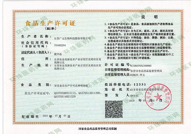生產(chǎn)企業(yè): 東營廣元生物科技股份有限公司