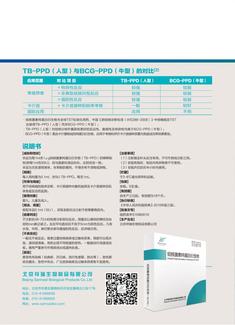 | 適應(yīng)癥 | 用于結(jié)核病的臨床診斷、卡介苗接種對(duì)象的選擇及卡介苗接種后機(jī)體免疫反應(yīng)的監(jiān)測(cè)。 |
