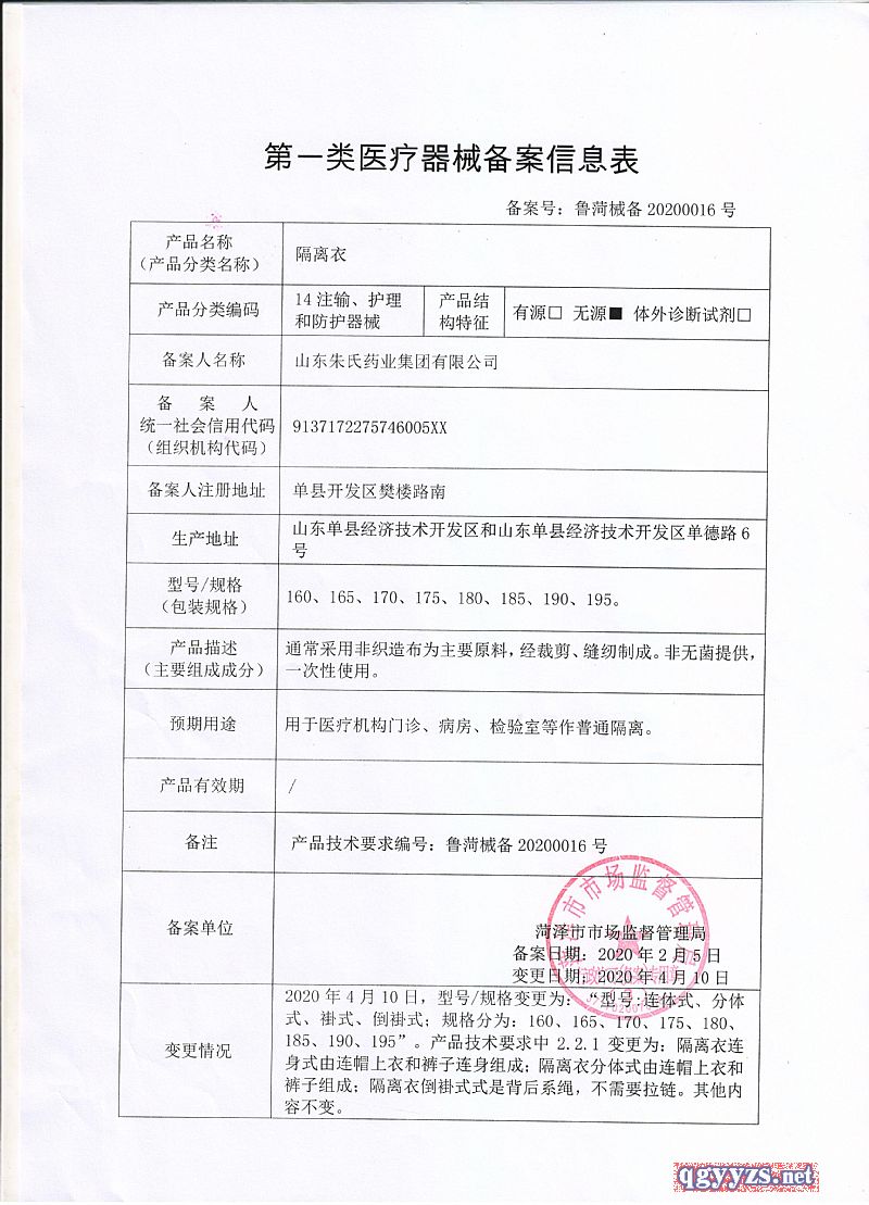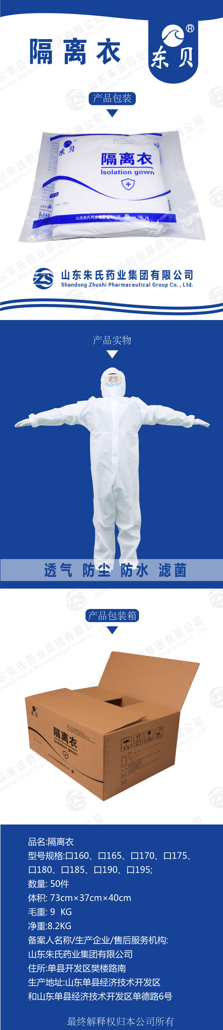 | 其它說明 | 山東醫(yī)用隔離服生產(chǎn)加工廠家山東朱氏藥業(yè),醫(yī)用隔離服全國招商,廠家直供,資質(zhì)齊全、文號正規(guī),醫(yī)用隔離服生產(chǎn)廠家全國招代理商,醫(yī)用隔離服批發(fā),也可以承接隔離衣貼牌代加工業(yè)務(wù)。 |