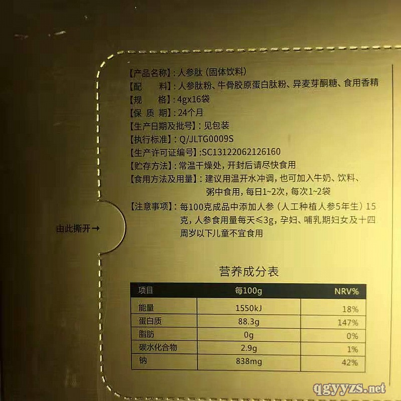 | 主要成分 | 人參肽粉,牛骨膠原蛋白肽粉, |