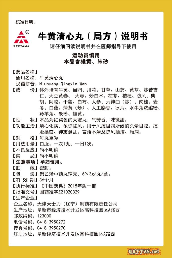 通用名稱: 牛黃清心丸