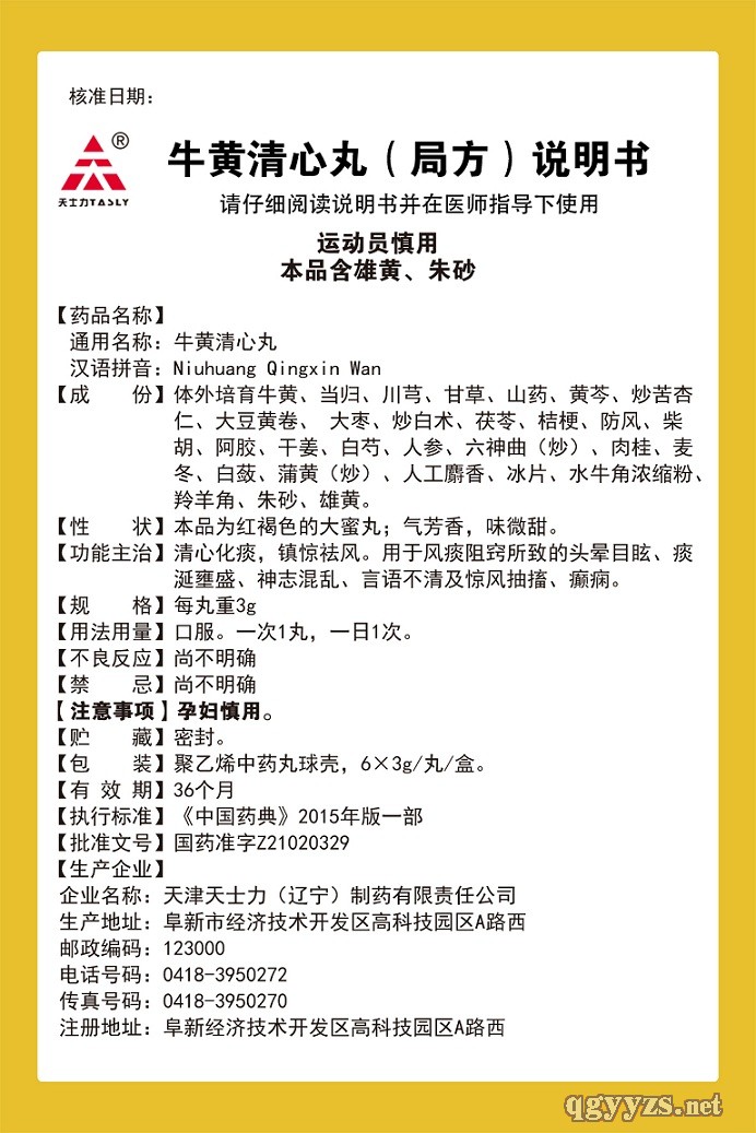 | 主要成分 | 牛黃、當(dāng)歸、川芎、甘草、山藥、黃芩、炒苦杏仁、大豆黃卷、大棗、炒白術(shù)、茯苓、桔梗、防風(fēng)、柴胡、阿膠、干姜、白芍、人參、六神曲(炒)、肉桂、麥冬、白蘞、蒲黃(炒)、人工麝香、冰片、水牛角濃縮粉、羚羊角、朱砂、雄黃。 |