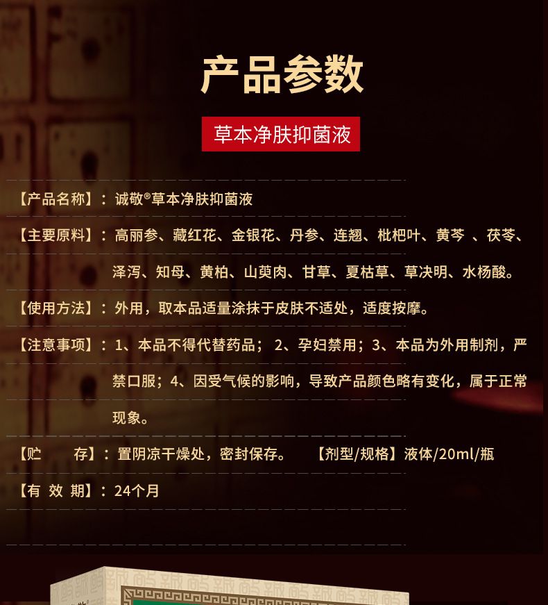 產(chǎn)品名稱: 誠敬草本凈膚抑菌液