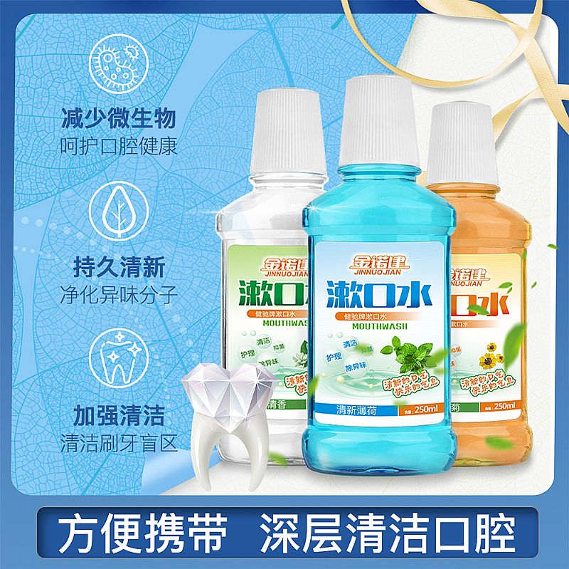 | 補充說明 | 【注意事項】 1.不可吞服,兒童不宜使用。 2.對本品過敏者禁用。 3.本品為衛(wèi)生用品類產品,不能代替藥品。 【貯藏】 密閉、避光、置于陰涼處保存。 【有效期】24個月 溫馨提示: 1.早晚刷牙后、或需要清潔口腔時使用; 2.建議每次使用約一瓶蓋,漱口后吐出. 3.行動不便,年老者或兒童使用。使用漱口水前先用清水漱口,幫助食物殘渣從牙齒間隙中沖刷出來,這樣在運用漱口水的時分,能夠讓漱口水大面積的觸摸牙齦,幫助清新口氣和殺菌。將清水含在口內,煽動兩腮與唇部,使清水在口腔內能充分與牙齒、牙齦觸摸,并使用水力重復地沖刷口腔各個部位,這樣就盡可能清除去存留在牙齒的小窩小溝、牙間隙、牙齦、唇頰溝等處的食物殘渣和軟垢,使口腔內的細菌數(shù)量相對減少,從而到達清潔口腔的目的。 |