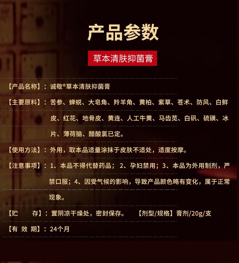 | 產(chǎn)品名稱 | 誠(chéng)敬草本清膚抑菌膏 |
