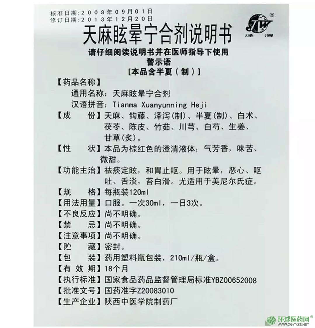 | 通用名稱 | 天麻眩暈寧合劑 |