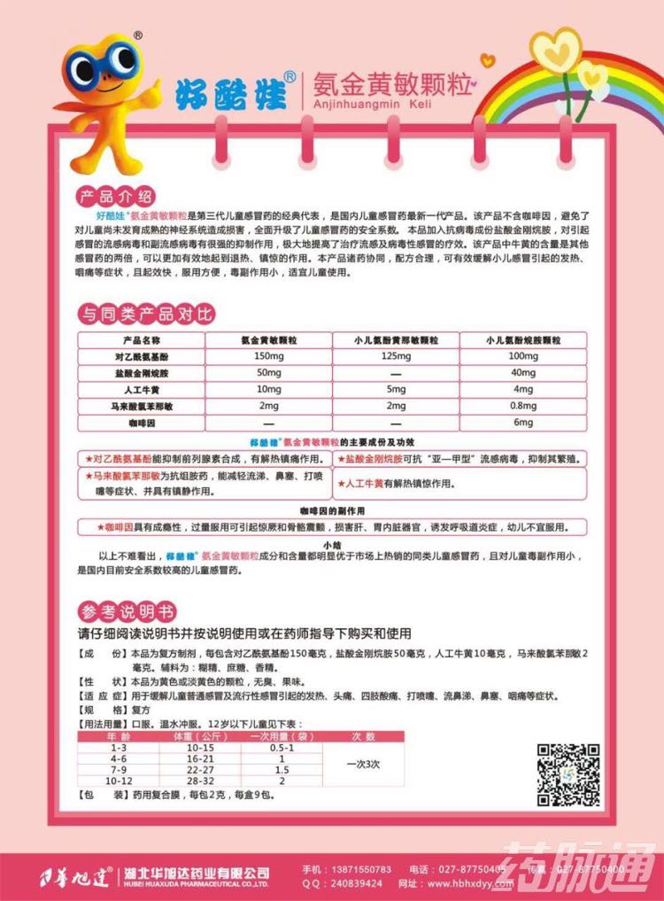 | 產(chǎn)品賣點 | 1.OTC甲類,新一代感冒藥,**無嗜睡; 2.含有抗病毒成分,抵抗流感,標本兼治; 3.科學(xué)組方效果好,含量更高,藥效更強; 4.水果口味,顆粒劑型,服用方便 |