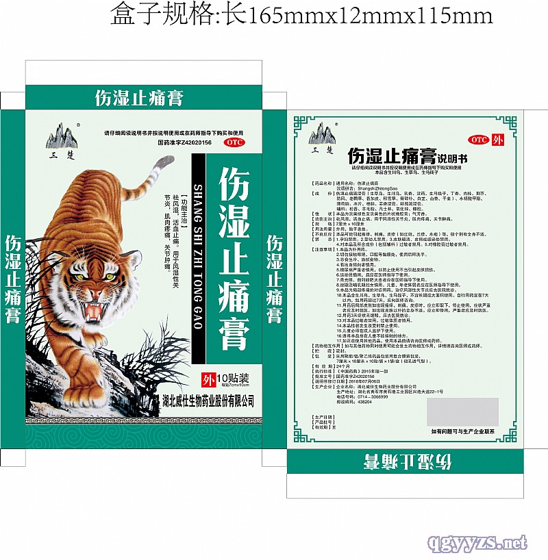 | 功能主治 | 傷濕止痛膏說(shuō)明書(shū) 【藥品名稱】通用名稱:傷濕止痛膏 【成分】傷濕止痛流浸膏、 【性狀】本品為淡黃綠色至淡黃色的片狀橡膠膏;氣芳香 【功能主治】祛風(fēng)濕,活血止痛。用于風(fēng)濕性關(guān)節(jié)炎,肌肉疼痛,關(guān)節(jié)腫痛 【規(guī)格】7厘米x10厘米 【用法用量】外用,貼患處。將患處皮膚表面洗凈,擦干,撕去覆蓋在膏布上的隔離層,將膏面貼于患處的皮膚上。天冷時(shí),可輔以按摩與熱敷 【不良反應(yīng)】本品可能引起瘙癢、刺痛、皮疹等,極個(gè)別有全身不適。 【禁忌】 【注意事項(xiàng)】 |