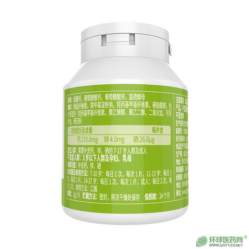 | 主要成分 | 碳酸鈣、葡萄糖酸鈣、葡萄糖酸鋅,富硒酵母 |