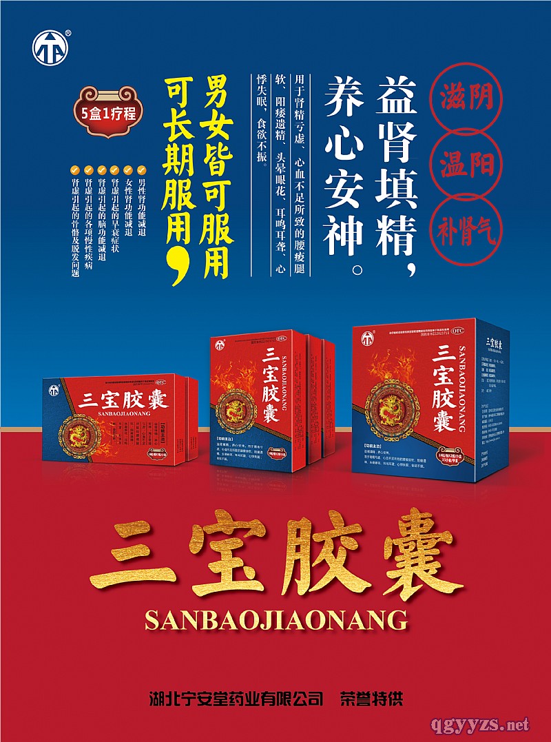 | 產(chǎn)品賣點(diǎn) | 1、三寶膠囊由多種名貴中藥材萃取而成,配伍合理,一補(bǔ)一斂,達(dá)到補(bǔ)益腎臟的作用; 2、三寶膠囊具有預(yù)防睪丸萎縮,保持睪丸活力,延緩睪丸微細(xì)結(jié)構(gòu)改變,具有抗衰老的作用; 3、三寶膠囊是強(qiáng)有力的補(bǔ)腎復(fù)方中藥制劑,同時(shí)具備滋陰、溫陽、補(bǔ)腎氣三重功能,,5盒為一個(gè)療程,療程用藥效果更佳! 4、三寶膠囊使用人群廣泛,男女皆可使用,可長期服用,能促進(jìn)血**水平提高,加快腎臟疾病的恢復(fù)! |
