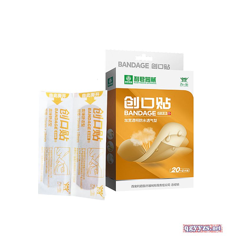 | 補充說明 | 產(chǎn)品型號:高彈舒適型、防水透氣型、防水透氣卡通型、經(jīng)濟輕巧型br /產(chǎn)品規(guī)格:20+2片/盒、20+2片/盒、20片/盒、100片/盒br /br / 主要結構:創(chuàng)口貼由接觸創(chuàng)面的敷墊、背貼和保護層(臨用前去除)組成,不含藥物,防水透氣型創(chuàng)口貼具有防水、透氣、阻菌性能。br /br / 禁忌癥、注意事項、警示及提示性內容:br /1)本產(chǎn)品環(huán)氧乙烷消毒,出廠前環(huán)氧乙烷殘留量應不大于10μg/g。br /2)本產(chǎn)品僅供一次性使用。br /3)本產(chǎn)品包裝破損時切勿使用。br /4)本產(chǎn)品應無皮膚刺激,無細胞毒性,無致敏性。br /5)使用時發(fā)生氧化鋅過敏者立即停止使用。br / br /貯存條件:經(jīng)包裝后的創(chuàng)口貼應貯存在常溫干燥,無腐蝕性氣體和通風良好,無陽光 直接照射的清潔場所。br /br / 使用期限:經(jīng)包裝后的創(chuàng)口貼在按照要求的儲存的條件下,自消毒之日起使用期限為3年。 |