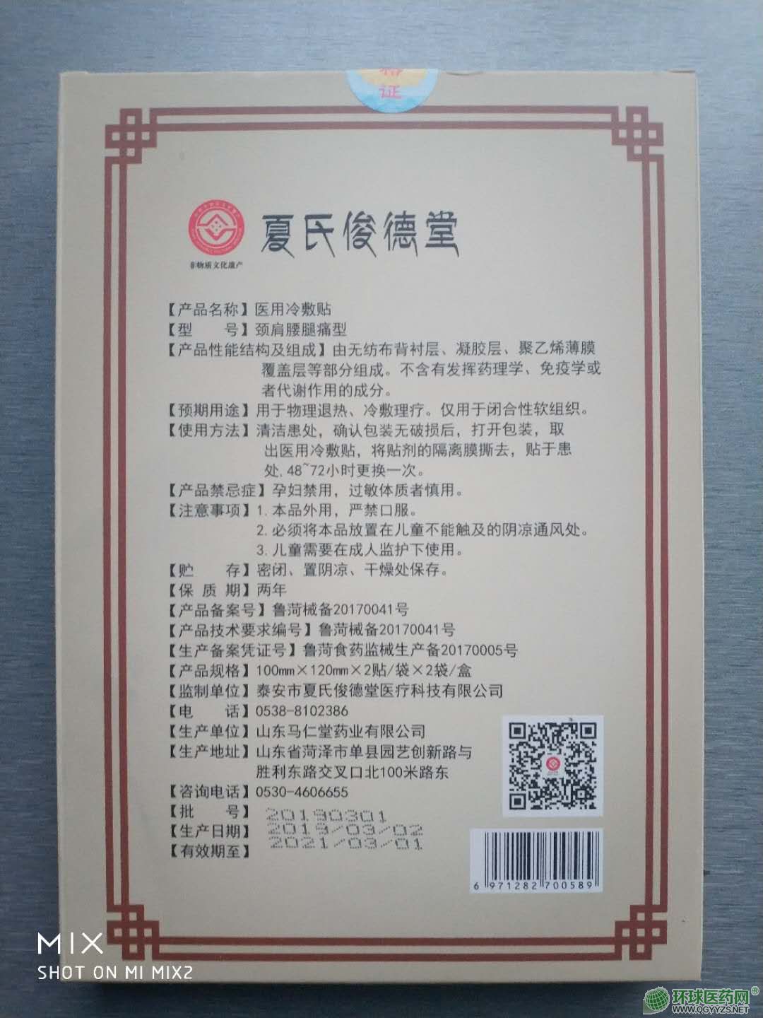 | 補(bǔ)充說(shuō)明 | 【產(chǎn)品禁忌癥】孕婦禁用,過(guò)敏體質(zhì)者慎用。 【注意事項(xiàng)】1.本品外用,嚴(yán)禁口服。 2.必須將本品放置在兒童不能觸及的陰涼通風(fēng)處。 3.兒童需要在成人監(jiān)護(hù)下使用。 【貯 存】密閉、置陰涼、干燥處保存。 【保質(zhì)期】?jī)赡?br />【產(chǎn)品備案號(hào)】魯菏械備20170041號(hào) 【產(chǎn)品技術(shù)要求編號(hào)】魯菏械備20170041號(hào) 【生產(chǎn)備案憑證號(hào)】魯菏食藥監(jiān)械生產(chǎn)備20170005號(hào) 【產(chǎn)品規(guī)格】100mmX120mmX2貼/袋X2袋/盒 【監(jiān)制單位】泰安市夏氏俊德堂醫(yī)療科技有限公司 【電 話】0538-8102386 【生產(chǎn)單位】山東馬仁堂藥業(yè)有限公司 【生產(chǎn)地址】山東省荷澤市單縣園藝創(chuàng)新路與 勝利東路交叉口北100米路東 【咨詢電話】0530-4606655 【批 號(hào)】見(jiàn)外盒 【生產(chǎn)日期】見(jiàn)外盒 【有效期至】見(jiàn)外盒 請(qǐng)仔細(xì)閱讀說(shuō)明書(shū)并按說(shuō)明使用或在醫(yī)師指導(dǎo)下購(gòu)買(mǎi)和使用 |