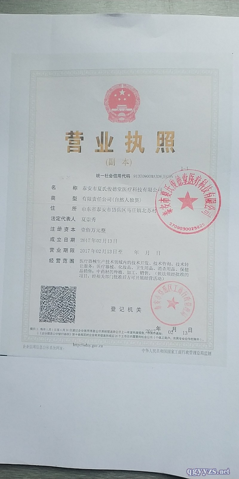 招商企業(yè): 泰安市夏氏俊德堂醫(yī)療科技有限公司