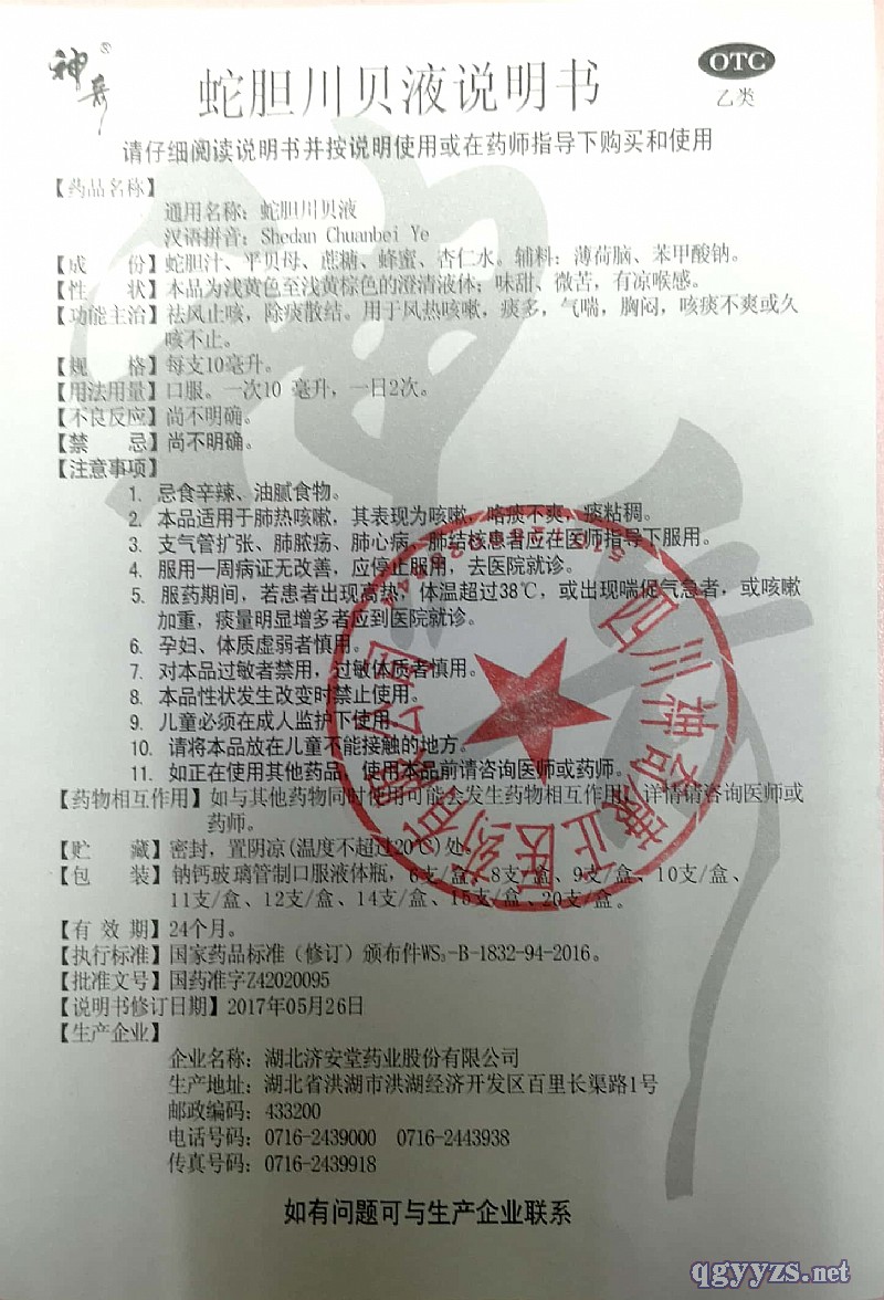 通用名稱: 蛇膽川貝液