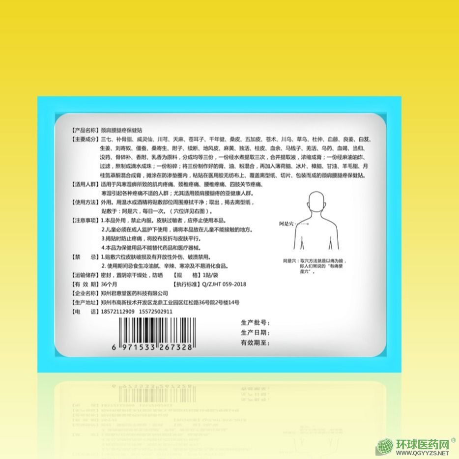 產(chǎn)品名稱: 頸肩腰腿疼痛保健貼