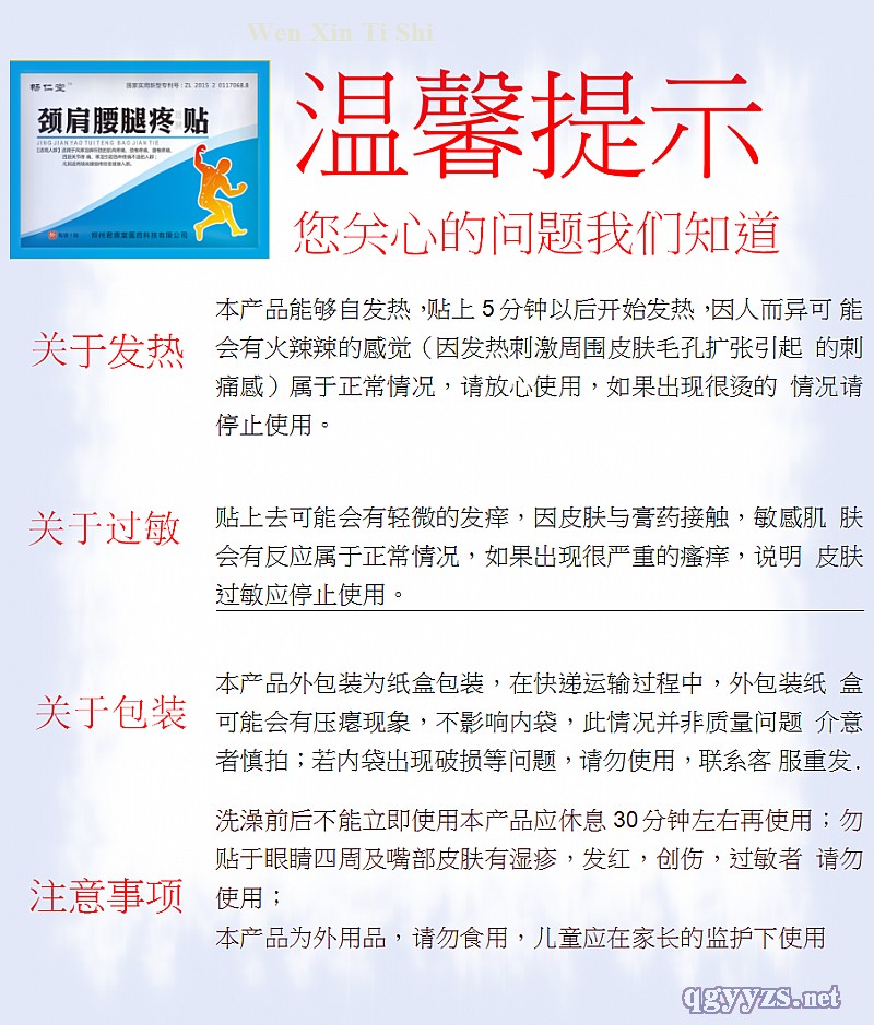 | 補(bǔ)充說明 | 注意事項(xiàng):1.本品外用,禁止內(nèi)服。皮膚過敏者,應(yīng)停止使用本品。 2.兒童必須在成人監(jiān)護(hù)下使用,請將本品放在兒童不能接觸的地方。 3.揭貼時防止疼痛,將膠布反折與皮膚平行。 4.本品為保健用品不能替代藥品和醫(yī)療器械 |