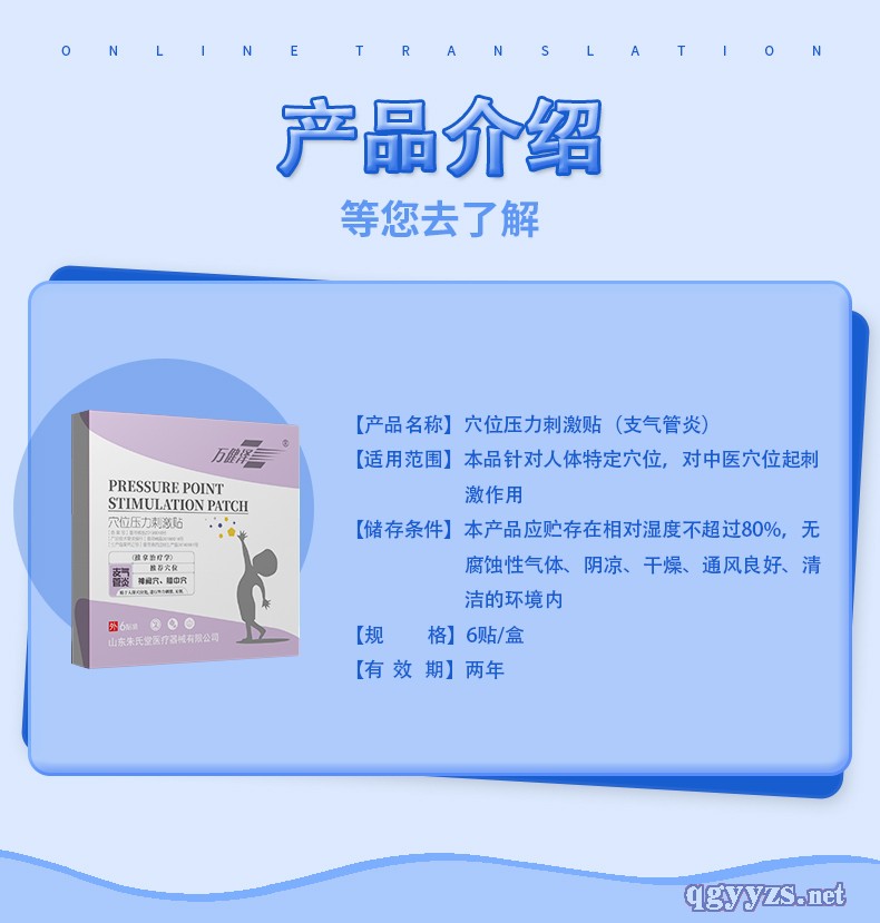 | 產(chǎn)品用途 | 貼于人體穴位處,進(jìn)行外力刺激。無(wú)創(chuàng)。 |