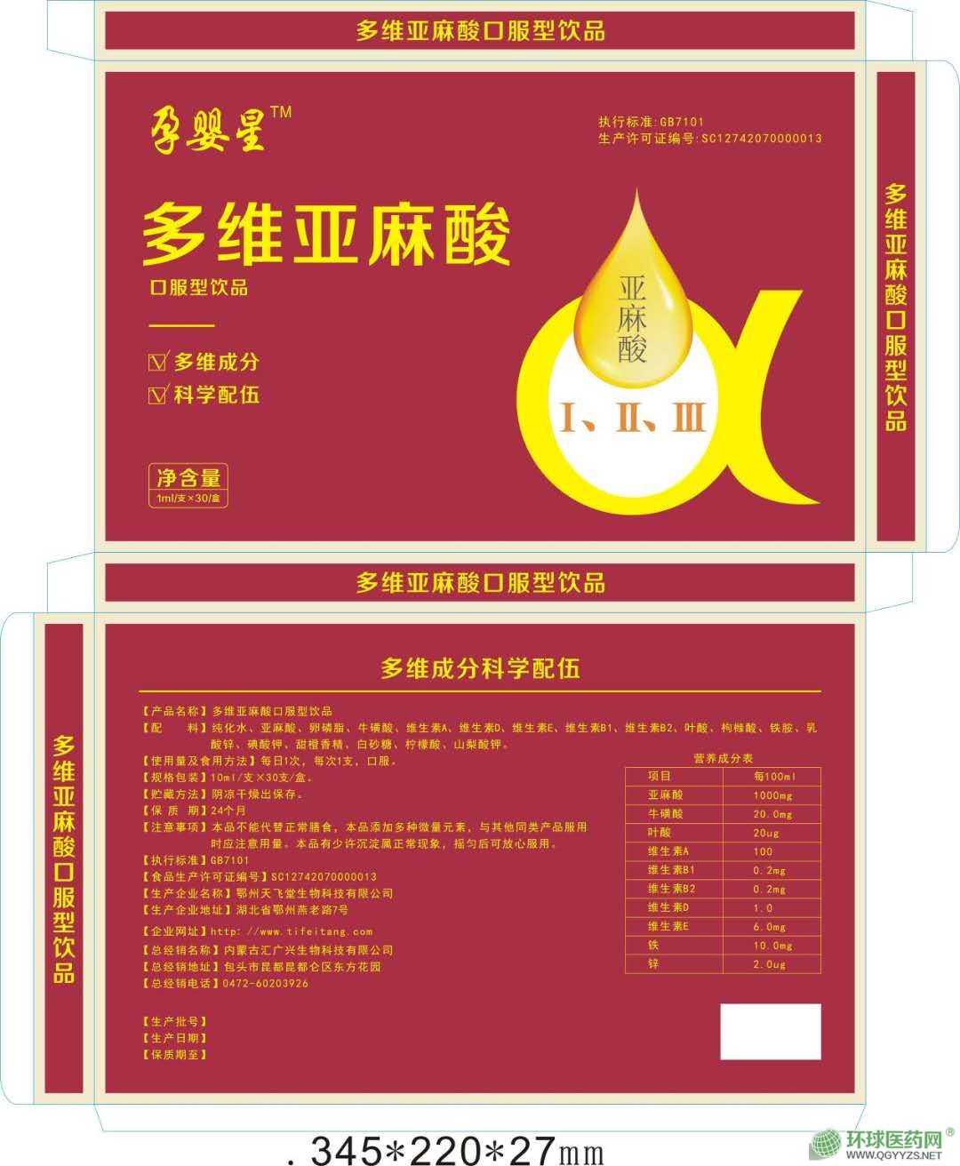 | 主要成分 | 亞麻酸,卵磷脂,;撬,葉酸,維生素A,維生素B1,維生素B2,維生素D,維生素E,鐵,鋅,碘 |
