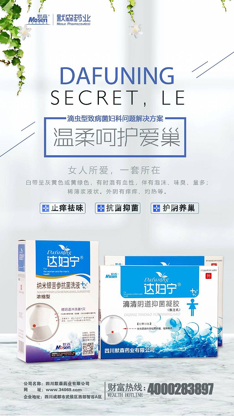 | 補(bǔ)充說明 | 達(dá)婦寧優(yōu)勢:5個(gè)系列,針對(duì)5種不同婦科問題,產(chǎn)品都是搭配好的(洗的、陰道凝膠、護(hù)理保養(yǎng)),能有效提升客單價(jià)及門店毛利率,專業(yè)的精準(zhǔn)洗護(hù)**品牌。達(dá)婦寧系列也比較復(fù)合女性心理消費(fèi)需求(女性購買的護(hù)膚品,有水乳霜,而且都是一個(gè)品牌,私處對(duì)于女性來說相當(dāng)于第二張臉,其實(shí)都很看重) |