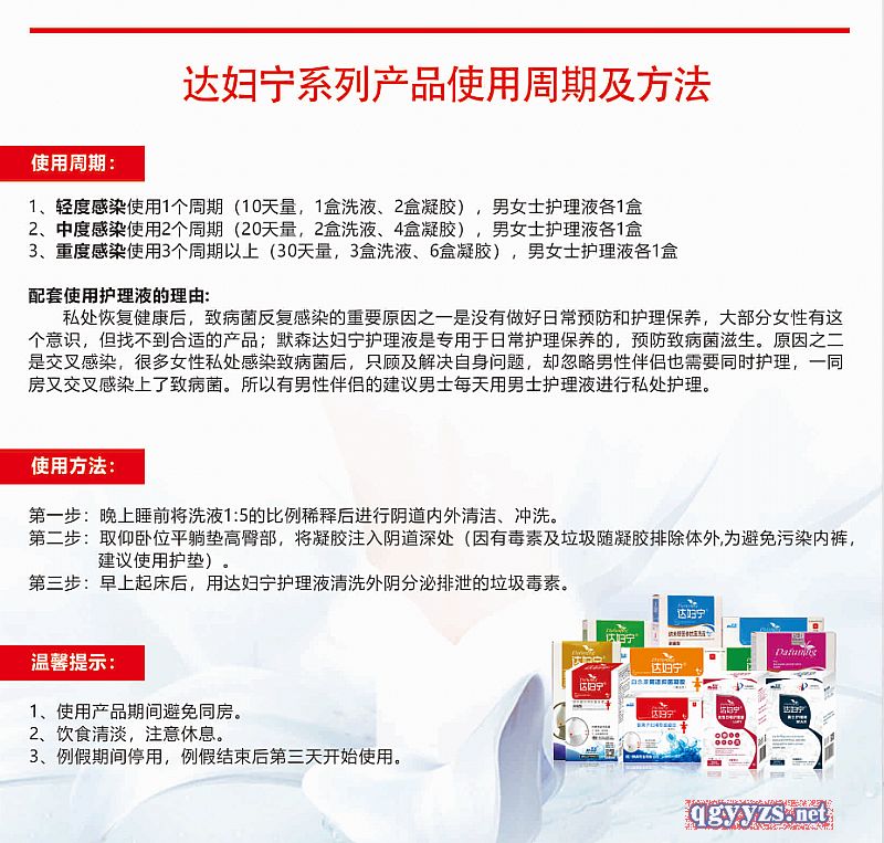| 補充說明 | 達婦寧,專注私密健康!三步重煥私處年輕和健康的生殖健康系統(tǒng)解決方案: **步:洗護(洗液,直擊問題根源殺滅致病菌) 第二步:修復(凝膠,深徹修復滋養(yǎng)深入抑菌,修復私密健康生態(tài)環(huán)境) 第三步:養(yǎng)護(護理液,滋潤養(yǎng)護,保持年輕態(tài),男女同用,預防交叉) 產(chǎn)品不含抗生素激素,只殺有害菌,保護有益菌,提升免疫力! |