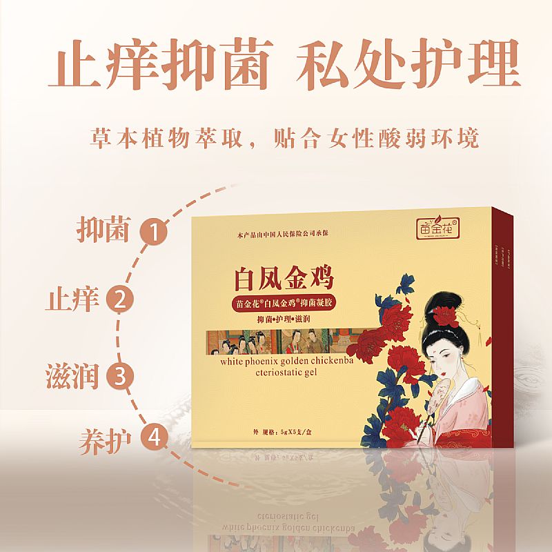 | 產(chǎn)品名稱 | 苗金花白鳳金雞抑菌凝膠 |