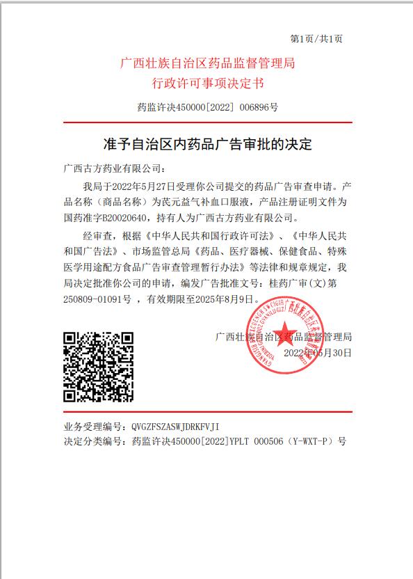 | 藥品上市許可持有人 | 廣西古方藥業(yè)有限公司 |