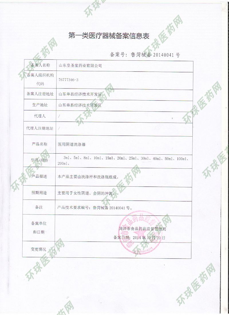 批準(zhǔn)文號(hào): 魯菏械備20140041 【驗(yàn)證真?zhèn)?/a>】